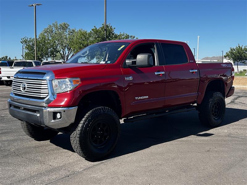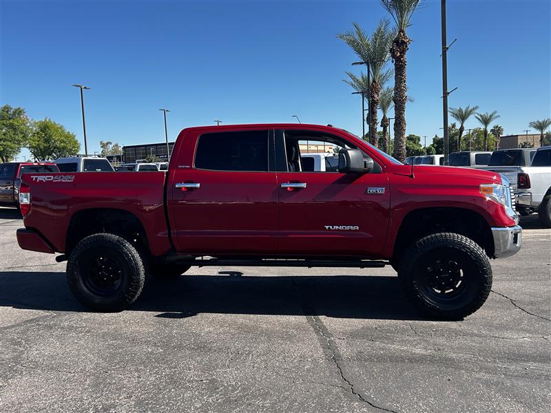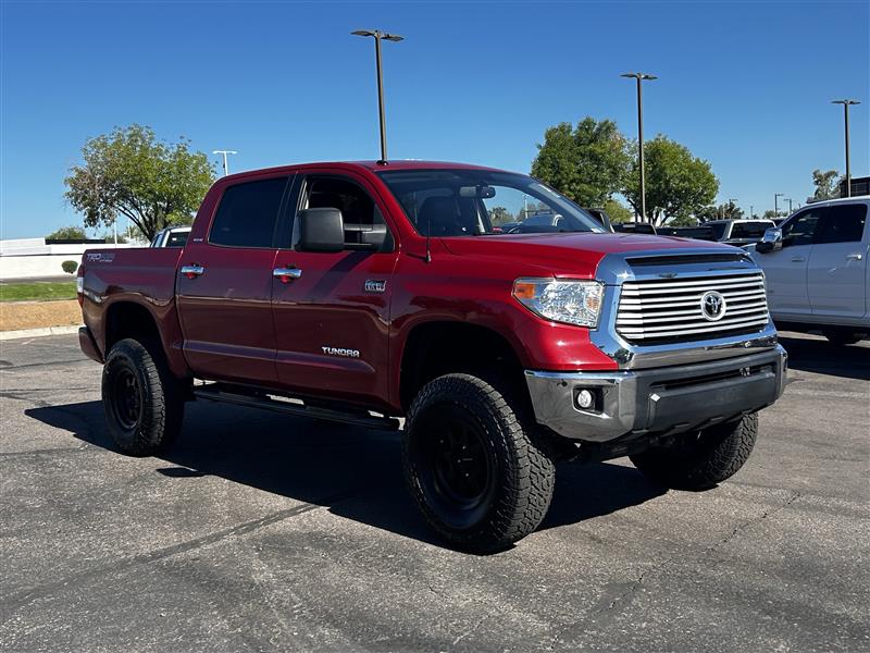 Red 2016 Toyota Tundra CrewMax 4WD 4D CrewMaxOdometer is 52192 miles below market average! 13/17 City/Highway MPGi-Force 5.7L V8 Flex Fuel DOHC 32V LEV 6-Speed Automatic Electronic with Overdrive 4WD, Black Leather.At Tempe CJDR and Kia, we are committed to providing our customers with SAFE and RELIABLE vehicles at the RIGHT PRICE! All pre-owned vehicles are subject to an extensive 110 point inspection, and ALL reconditioning costs are already included in the price of the vehicle. *Tempe $1,000 Finance Bonus Cash discount only available for standard prime lender conventional financing arranged through Tempe Dodge OAC. We reserve the right to determine customer eligibility for the $1,000 Tempe Finance Bonus Cash discount.Awards:* JD Power Vehicle Dependability Study * JD Power Vehicle Dependability Study, Vehicle Dependability Study * JD Power Vehicle Dependability Study (VDS), Vehicle Dependability Study (VDS) * ALG Residual Value Awards, Residual Value Awards