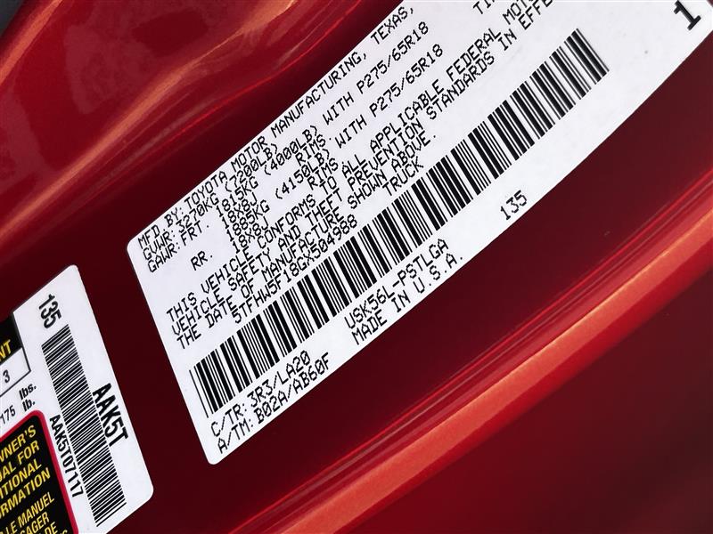 Vehicle Inquiry for 2016 Toyota Tundra Limited 5.7L FFV CrewMax 4WD