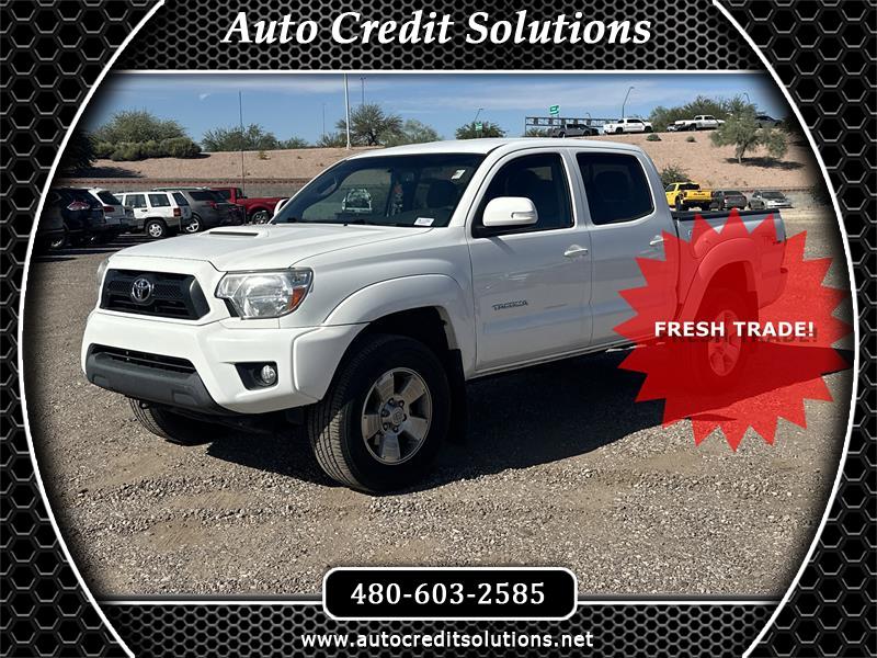 Recent Arrival!White 2013 Toyota Tacoma V6 RWD 4D Double Cab17/21 City/Highway MPG4.0L V6 EFI DOHC 24V 5-Speed Automatic with OverdriveAt Tempe CJDR and Kia, we are committed to providing our customers with SAFE and RELIABLE vehicles at the RIGHT PRICE! All pre-owned vehicles are subject to an extensive 110 point inspection, and ALL reconditioning costs are already included in the price of the vehicle. *Tempe $1,000 Finance Bonus Cash discount only available for standard prime lender conventional financing arranged through Tempe Dodge OAC. We reserve the right to determine customer eligibility for the $1,000 Tempe Finance Bonus Cash discount.Awards:* 2013 KBB.com 5-Year Cost to Own Awards * 2013 KBB.com Best Resale Value Awards * 2013 KBB.com Brand Image AwardsReviews:* If you’re looking for a proven pickup that is as capable as it is stylish, the 2013 Toyota Tacoma deserves your attention. Nearly as capable as a full-size pickup but without the extra bulk and fuel consumption, the Tacoma fits a lot of needs. Source: KBB.com* Powerful and fuel-efficient engines; wide variety of body styles and trims; impressive build quality; full-size truck utility in a smaller package. Source: Edmunds