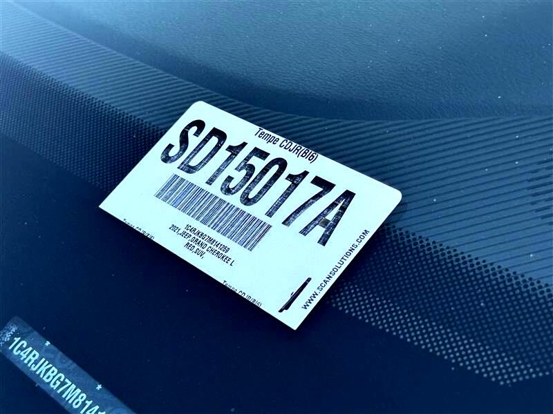 Velvet Red Pearlcoat 2021 Jeep Grand Cherokee L 4WD 4D Sport UtilityCertified. CARFAX One-Owner. Clean CARFAX. 18/25 City/Highway MPG3.6L V6 24V VVT 8-Speed AutomaticAt Tempe CJDR and Kia, we are committed to providing our customers with SAFE and RELIABLE vehicles at the RIGHT PRICE! All pre-owned vehicles are subject to an extensive 110 point inspection, and ALL reconditioning costs are already included in the price of the vehicle. *Tempe $1,000 Finance Bonus Cash discount only available for standard prime lender conventional financing arranged through Tempe Dodge OAC. We reserve the right to determine customer eligibility for the $1,000 Tempe Finance Bonus Cash discount.FCA US LLC Certified Pre-Owned Details:* Transferable Warranty* Warranty Deductible: $100* 125 Point Inspection* Vehicles Up to 75,000 Miles and/or 5 Model Years. 24-Hour Towing & Roadside Assistance, Car Rental Allowance, CARFAX® Vehicle History ReportTM and an Introductory 3-month Subscription to SiriusXM® Satellite Radio & Certified Warranty Upgrades* Limited Warranty: 3 Month/3,000 Mile (whichever comes first) after new car warranty expires or from certified purchase date* Powertrain Limited Warranty: 84 Month/100,000 Mile (whichever comes first) from original in-service date* Roadside Assistance* Vehicle History