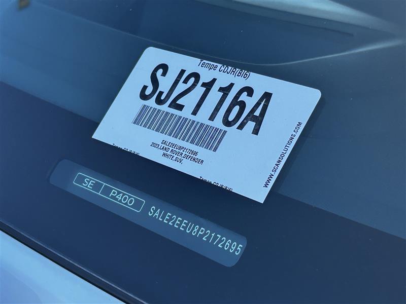 Fuji White 2023 Land Rover Defender 110 4WD 4D Sport UtilityClean CARFAX. 18/23 City/Highway MPG3.0L I6 8-Speed AutomaticAt Tempe CJDR and Kia, we are committed to providing our customers with SAFE and RELIABLE vehicles at the RIGHT PRICE! All pre-owned vehicles are subject to an extensive 110 point inspection, and ALL reconditioning costs are already included in the price of the vehicle. *Tempe $1,000 Finance Bonus Cash discount only available for standard prime lender conventional financing arranged through Tempe Dodge OAC. We reserve the right to determine customer eligibility for the $1,000 Tempe Finance Bonus Cash discount.