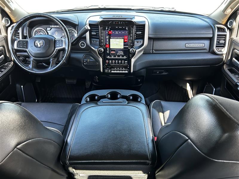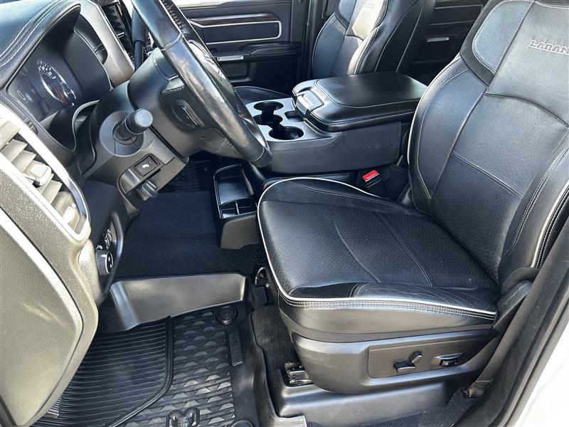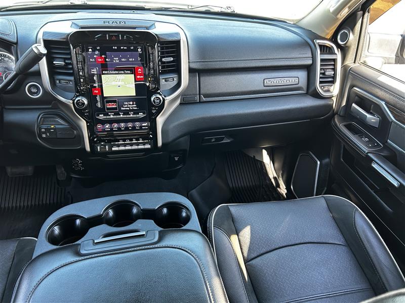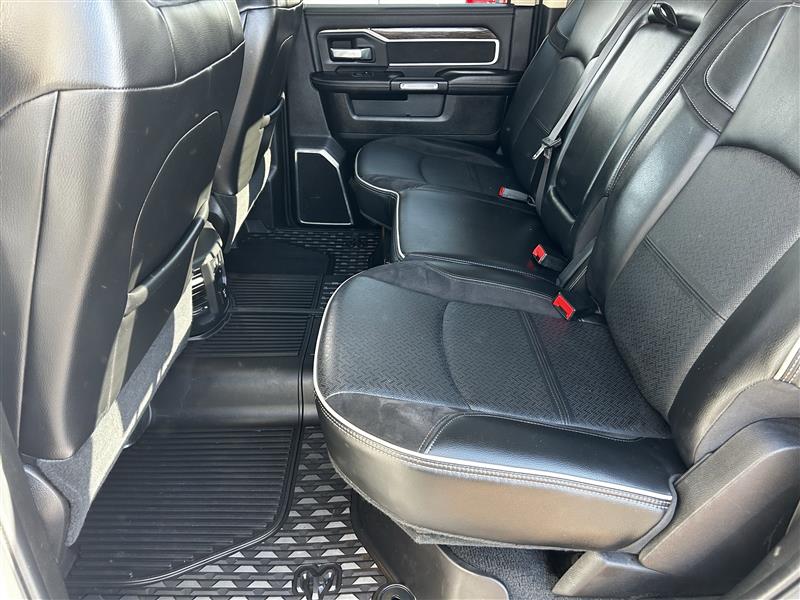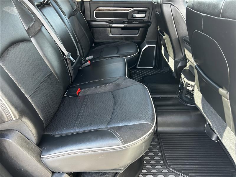 • LARAMIE LEVEL 2 EQUIPMENT GROUP -inc: SiriusXM Traffic Plus Blind Spot & Cross Path Detection Power Chrome Tow Mirrors w/Convex Spotter & Memory Mirror-Mounted Aux Reverse Lamps Exterior Mirrors w/Memory Power Adjustable Convex Aux Mirrors Rain Sensitive Windshield Wipers Power Adjustable Pedals w/Memory For Details Visit DriveUconnect.com Radio: Uconnect 4C Nav w/8.4 Display Selectable Tire Fill Alert 5-Year SiriusXM Travel Link Service GPS Navigation 5-Year SiriusXM Traffic Service Media Hub w/2 Charge Only USBs Heated Second Row Seats Foam Bottle Insert (Door Trim Panel) Disassociated Touchscreen Display HD Radio Ramcharger Wireless Charging Pad 1-Year SiriusXM Guardian Trial SiriusXM Travel Link Ventilated Front Seats Remote Tailgate Release 17 Speaker High Performance Audio Auto High Beam Headlamp Control Single Disc Remote CD Player 2nd Row In Floor Storage Bins Radio/Driver Seat/Mirrors/Pedals Memory